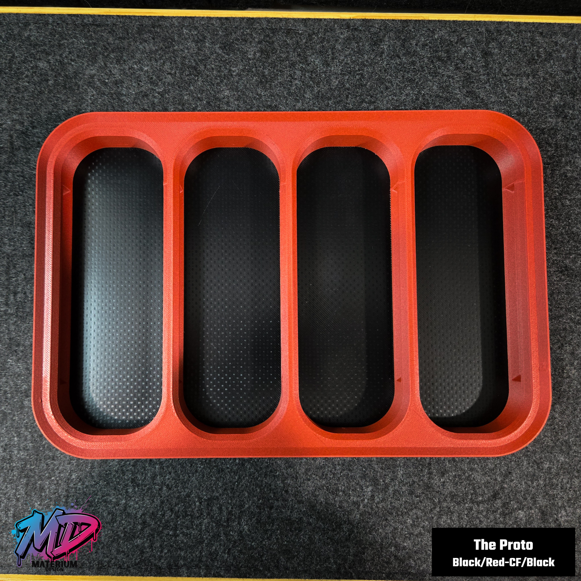 The Proto: Black TPU Slots + Red CF Frame + Black TPU Base. (Aggressive and high-contrast).